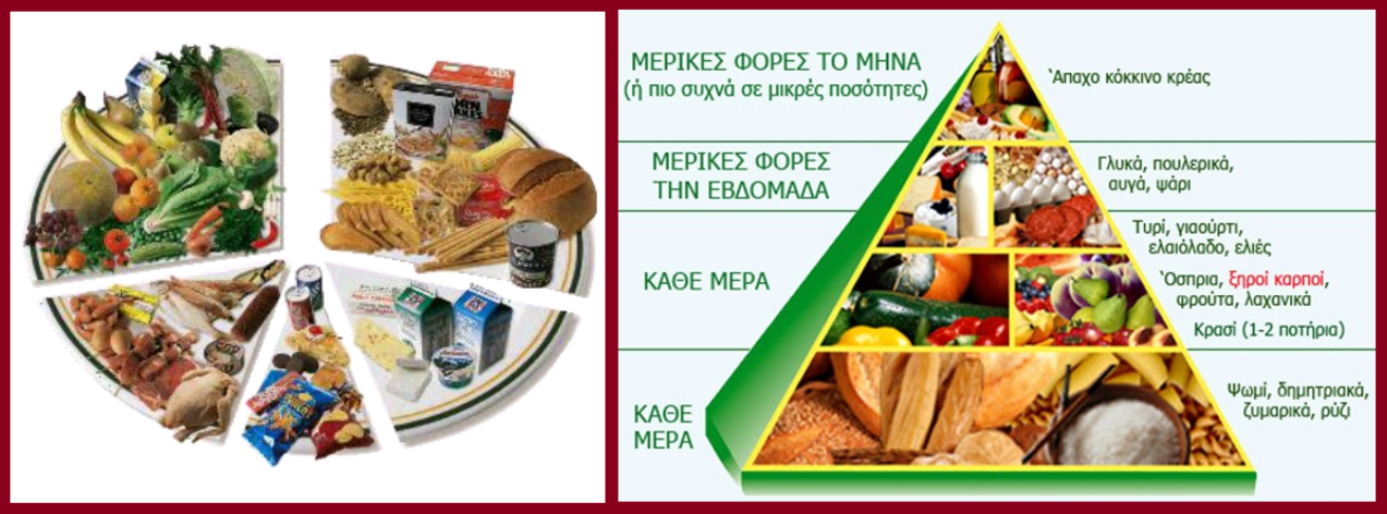 | Πυραμίδα vs Πίτα της ισορροπημένης διατροφής Στην ενότητα Διατροφή, ανοίξτε το αρχείο Πυραμίδα vs Πίτα της διατροφής και συζητήστε ποια από τις δύο εικόνες σας εξυπηρετεί καλύτερα (σας δίνει κατάλληλες πληροφορίες) και γιατί; |