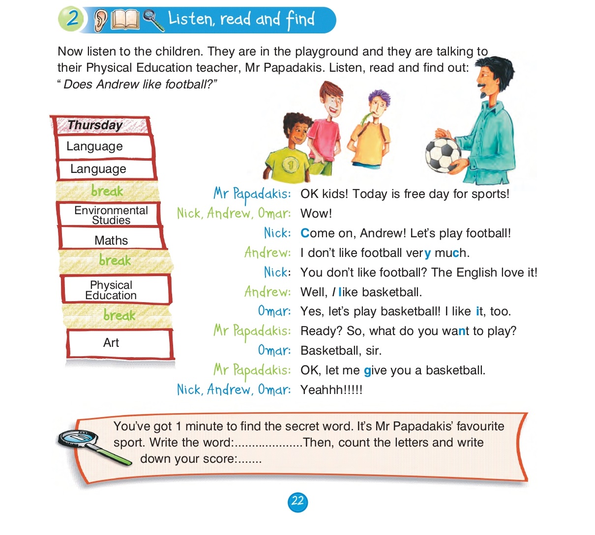 (3 λεπτά) Μελέτησε το λεξιλόγιο της ενότητα και σκέψου ποιο άθλημα θα ήθελες να προσθέσουμε. Οι παρακάτω ερωτήσεις από τις σελίδες 22, 23 και30 του βιβλίου σου θα σε βοηθήσουν να εντοπίσεις ποια αθλήματα δεν γνωρίζεις στα αγγλικά.