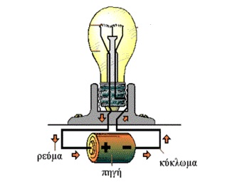 | Ηλεκτρικό κύκλωμα Η εικόνα απεικονίζει τη σύνδεση μια λάμπας πυρακτώσεως σε ένα απλό ηλεκτρικό κύκλωμα |