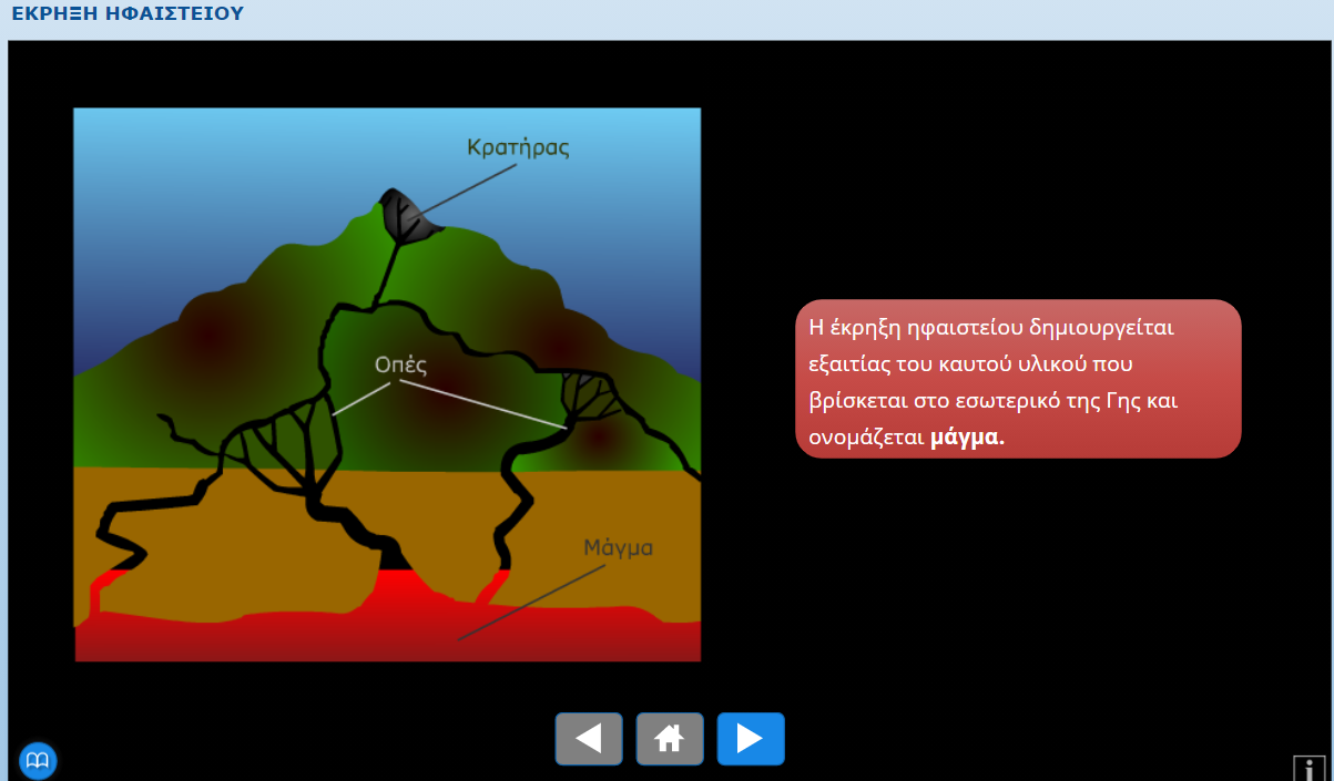 Πατήστε και παρακολούθηστε τη διαδραστική παρουσίαση "Έκρηξη ηφαιστείου" στην οποία περιγράφονται ο τρόπος και τα στάδια έκρηξης ενός ηφαιστείου.